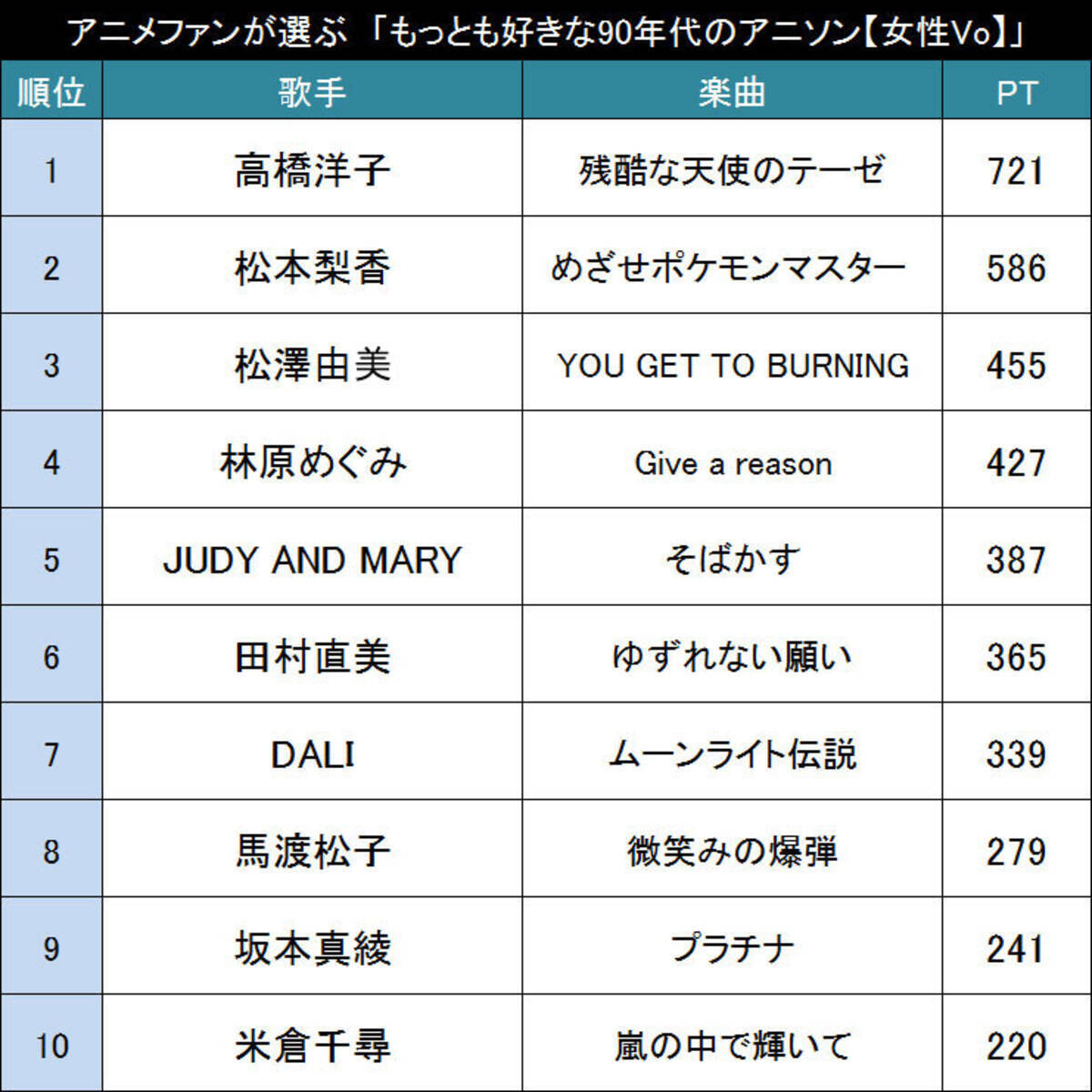 90年代 女性ボーカル限定 アニメファンが選ぶ もっとも好きな90年代のアニソン 女性vo Top 16年10月6日 エキサイトニュース